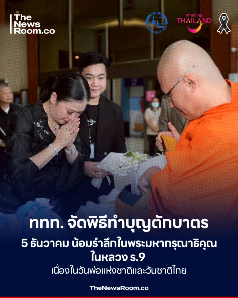 ททท. จัดพิธีทำบุญตักบาตร 5 ธันวาคม น้อมรำลึกในพระมหากรุณาธิคุณ ในหลวง ร.9 เนื่องในวันพ่อแห่งชาติและวันชาติไทย17 เมษายน 202617 เมษายน 2026