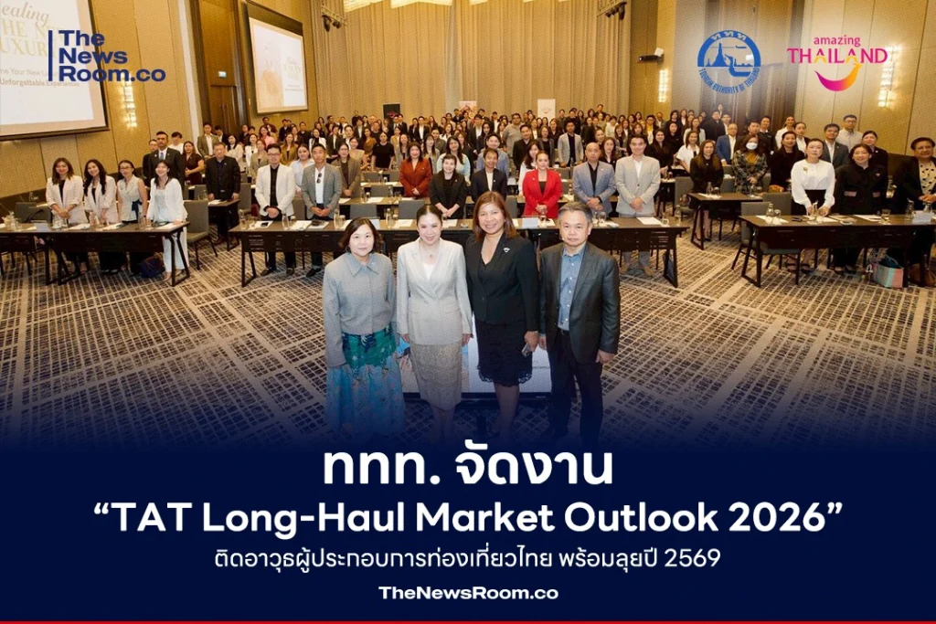 22 ตุลาคม 2568 — กระทรวงการท่องเที่ยวและกีฬา โดย การท่องเที่ยวแห่งประเทศไทย (ททท.) จัดงาน “TAT Long-Haul Market Outlook 2026” ณ โรงแรมชาเทรียม แกรนด์ กรุงเทพฯ เพื่ออัปเดตแนวโน้มตลาดนักท่องเที่ยวระยะไกลจาก ยุโรป อเมริกา ตะวันออกกลาง และแอฟริกา เตรียมความพร้อมผู้ประกอบการไทยรับศักราชท่องเที่ยวปี 2569