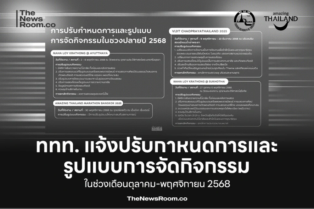 ททท. แจ้งปรับกาหนดการและรูปแบบการจัดกิจกรรมในช่วงเดือนตุลาคม-พฤศจิกายน 2568
