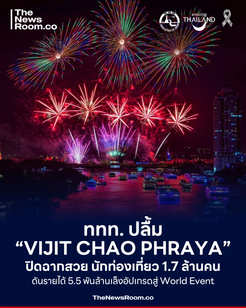 ททท. ปลื้ม “Vijit Chao Phraya” ปิดฉากสวย นักท่องเที่ยว 1.7 ล้านคน ดันรายได้ 5.5 พันล้าน เล็งอัปเกรดสู่ World Event