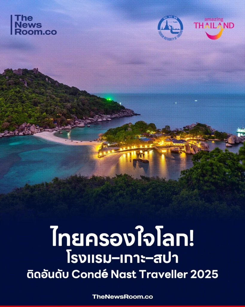 รางวัลระดับโลกตอกย้ำคุณภาพการท่องเที่ยวไทย! โรงแรม เกาะ และสปาในประเทศไทย สร้างชื่อกระหึ่มอีกครั้ง หลังติดอันดับรางวัลระดับโลก Condé Nast Traveller 2025 Readers’ Choice Awards จากนิตยสาร Condé Nast Traveller UK หนึ่งในสื่อด้านการท่องเที่ยวที่ทรงอิทธิพลที่สุดของโลก