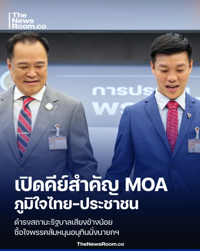 รายงานข่าวความคืบหน้าการเจรจากับระหว่างพรรคภูมิใจไทย และพรรคประชาชนที่จะต้องมีทำ Agreement บันทึกข้อตกลงสนับสนุนการจัดตั้งรัฐบาล หรือ MOA ระหว่างพรรคภูมิใจไทย กับพรรคประชาชน จะมีสาระสำคัญคือ