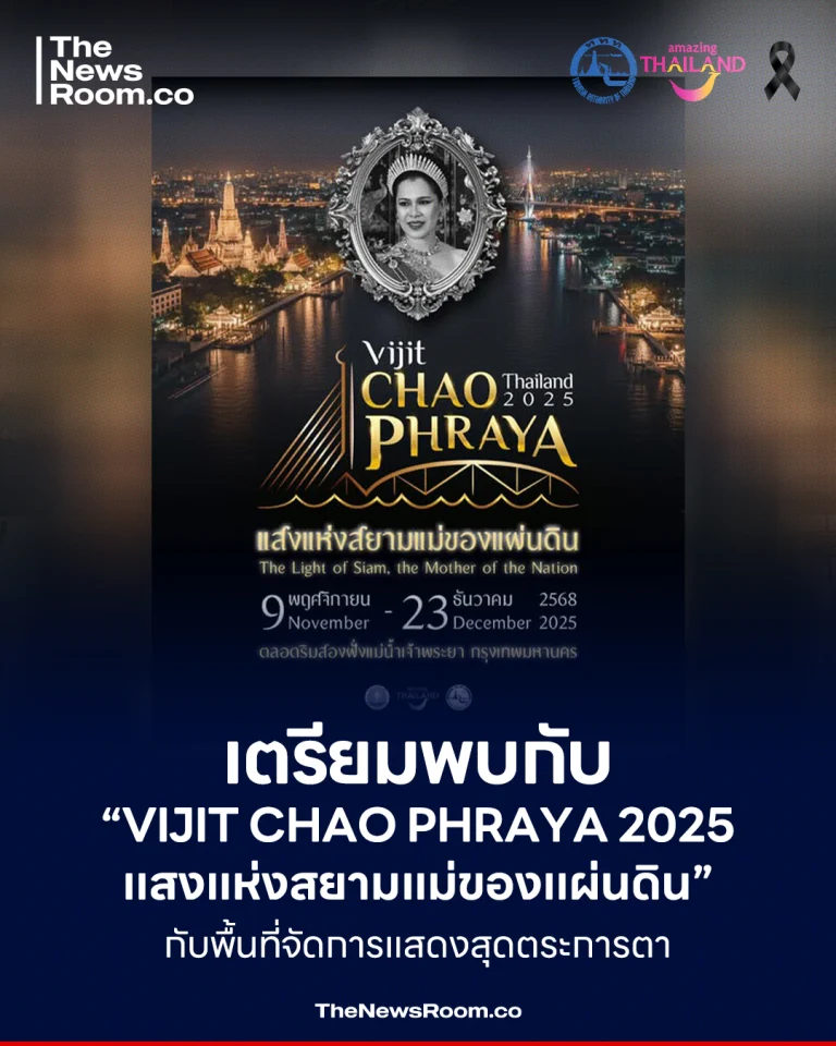 เตรียมพบกับ “VIJIT CHAO PHRAYA 2025 แสงแห่งสยามแม่ของแผ่นดิน” กับพื้นที่จัดการแสดงสุดตระการตา บริเวณริมสองฝั่งแม่น้ำเจ้าพระยา (สะพานพระราม 8 – สะพานพระราม 3) กรุงเทพมหานคร26 มีนาคม 202626 มีนาคม 2026